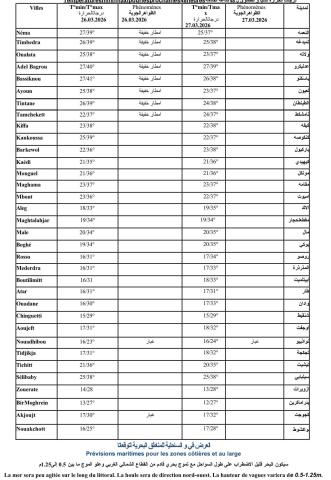 الحالة العامة للطقس على عموم البلاد خلال اليومين القادمين