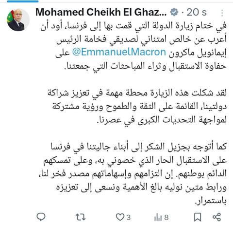 غزواني: زيارة فرنسا شكلت محطة مهمة في تعزيز الشراكة بين بلدينا
