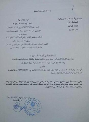 الإفراج مؤقتا عن سيدنا عالي ولد محمد خونه