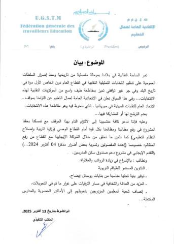 الاتحادية العامة لعمال التعليم تعلن مقاطعة انتخابات التمثيلية النقابية