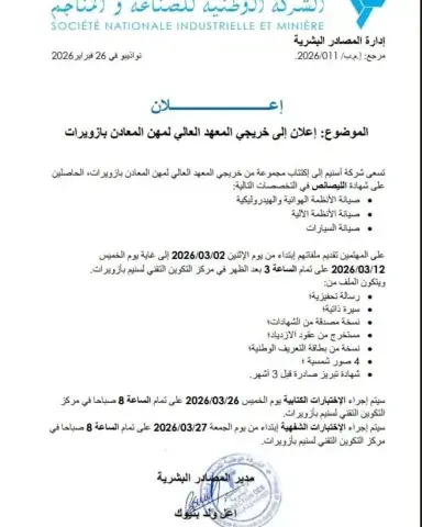 اكتتاب جديد في “سنيم” لصالح خريجي معهد المعادن