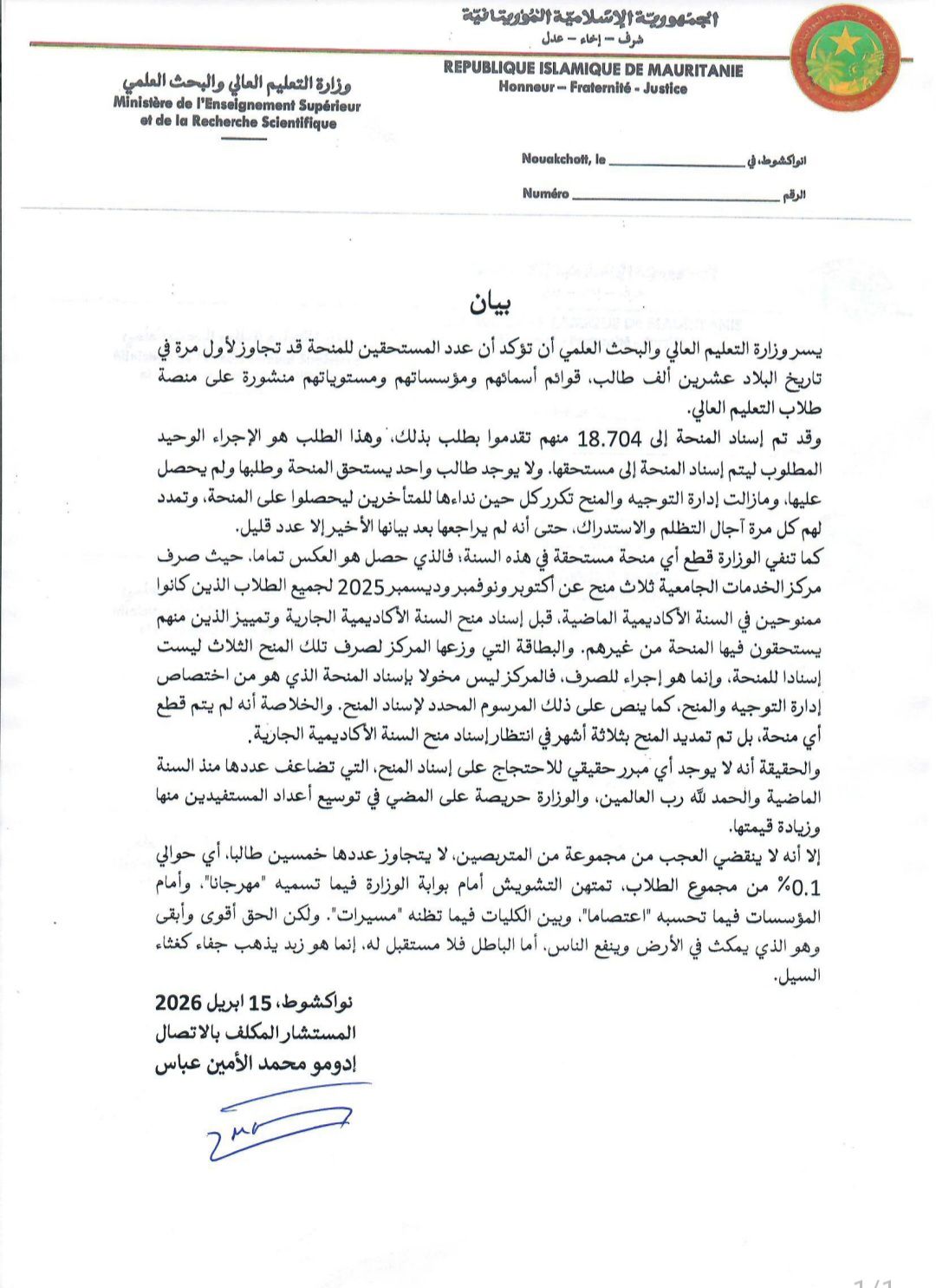 وشددت الوزارة على التزامها بتوسيع قاعدة المستفيدين وتحسين آليات الدعم، داعية إلى تحري الدقة في تناول ملف المنح.