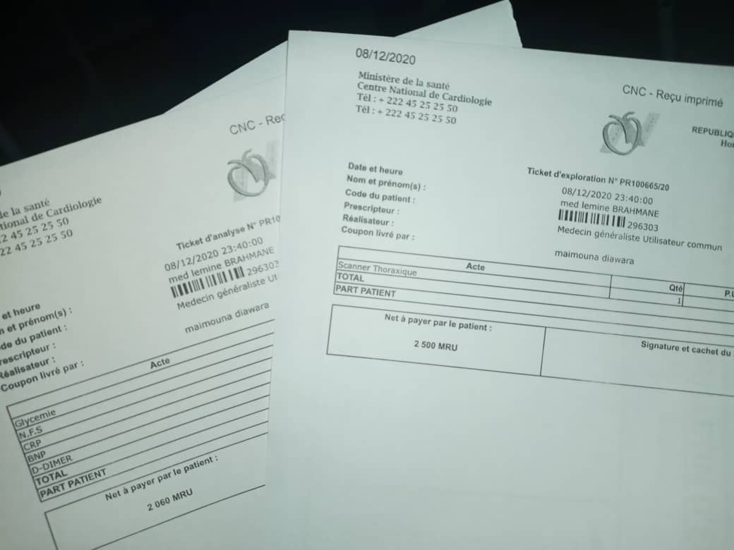 وذكر المواطن أنه كان أحضر مريضا له مصابا بفايروس كورونا كوفيد 19 إضافة لبعض الأمراض المزمنة يدعى إلى المركز وقد ارغمتهم الإدارة على إجراء عدد من الفحوص تبلغ تكلفتها 70 ألف أوقية، وحين استغرب ذلك في ظل التكفل بعلاج المصابين بالفايروس لم ينصتوا له ، وأخبروه بأن تلك الفحوص إجبارية.
