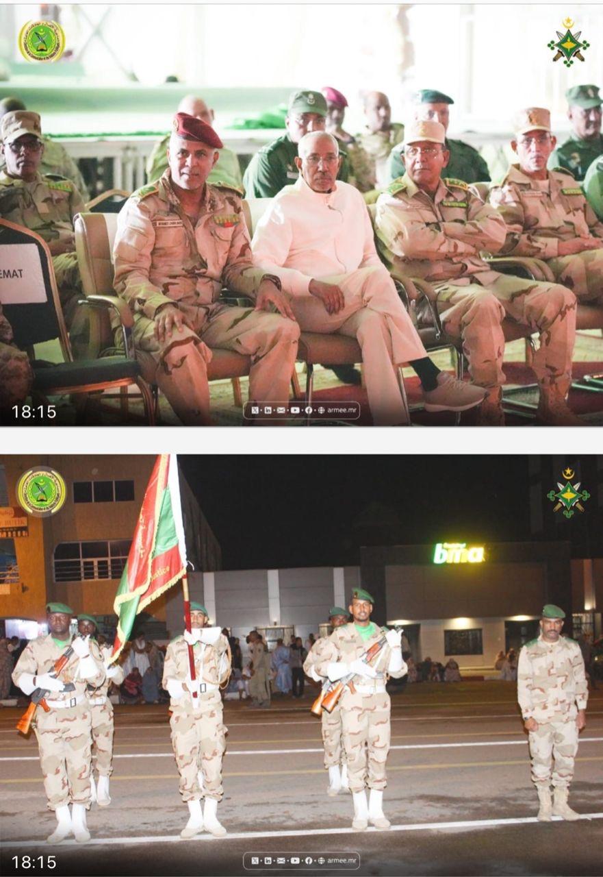 تفقد وزير الدفاع وشؤون المتقاعدين وأولاد الشهداء حننه ولد سيدي رفقة الفريق محمد فال الرايس الرايس قائد الأركان العامة للجيوش، اليوم الإثنين المسير العسكري المحضر للعرض العسكري،المنظم بمناسبة الذكرى الخامسة والستين لعيد الاستقلال الوطني.