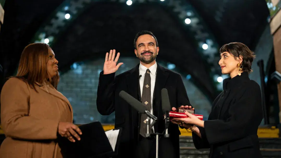 في خطوة غير مسبوقة بتاريخ مدينة نيويورك، أدى عمدة المدينة زهران ممداني، اليوم الخميس، اليمين الدستورية واضعًا يده على نسخة من المصحف الشريف، ليصبح أول مسلم يتولى منصب عمدة العاصمة الاقتصادية للولايات المتحدة الأمريكية.