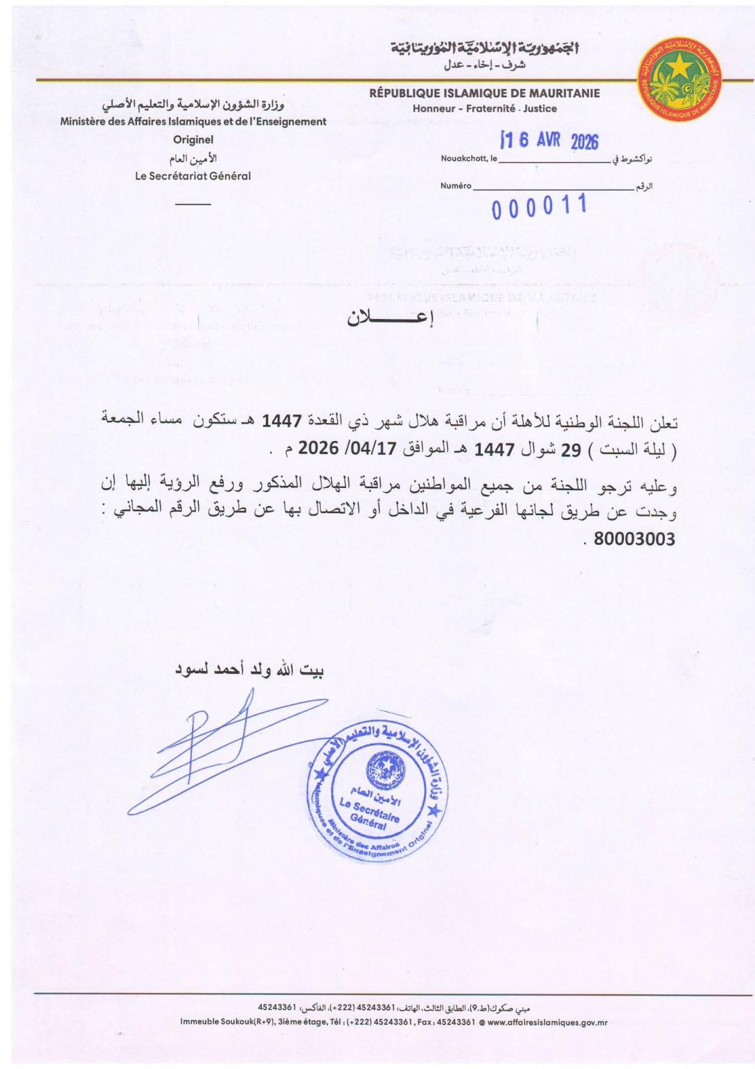 اللجنة وفي بلاغ نشرته صباح اليوم الخميس، طالبت المواطنين بمراقبة الهلال النذكور ورفع الرؤية إليها عن طريق لجانها الفرعية أو عن طريق رقمها المجاني 80003003