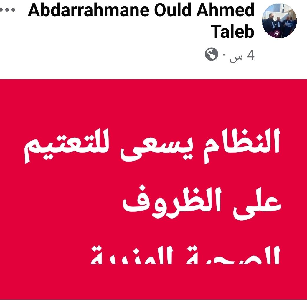 قال المحامي عبد الرحمن ولد أحمد طالب، عضو هيئة الدفاع عن الرئيس الموريتاني السابق محمد ولد عبد العزيز، إن النظام يسعى إلى التعتيم على ما وصفها بالظروف الصحية المزرية لموكله.
