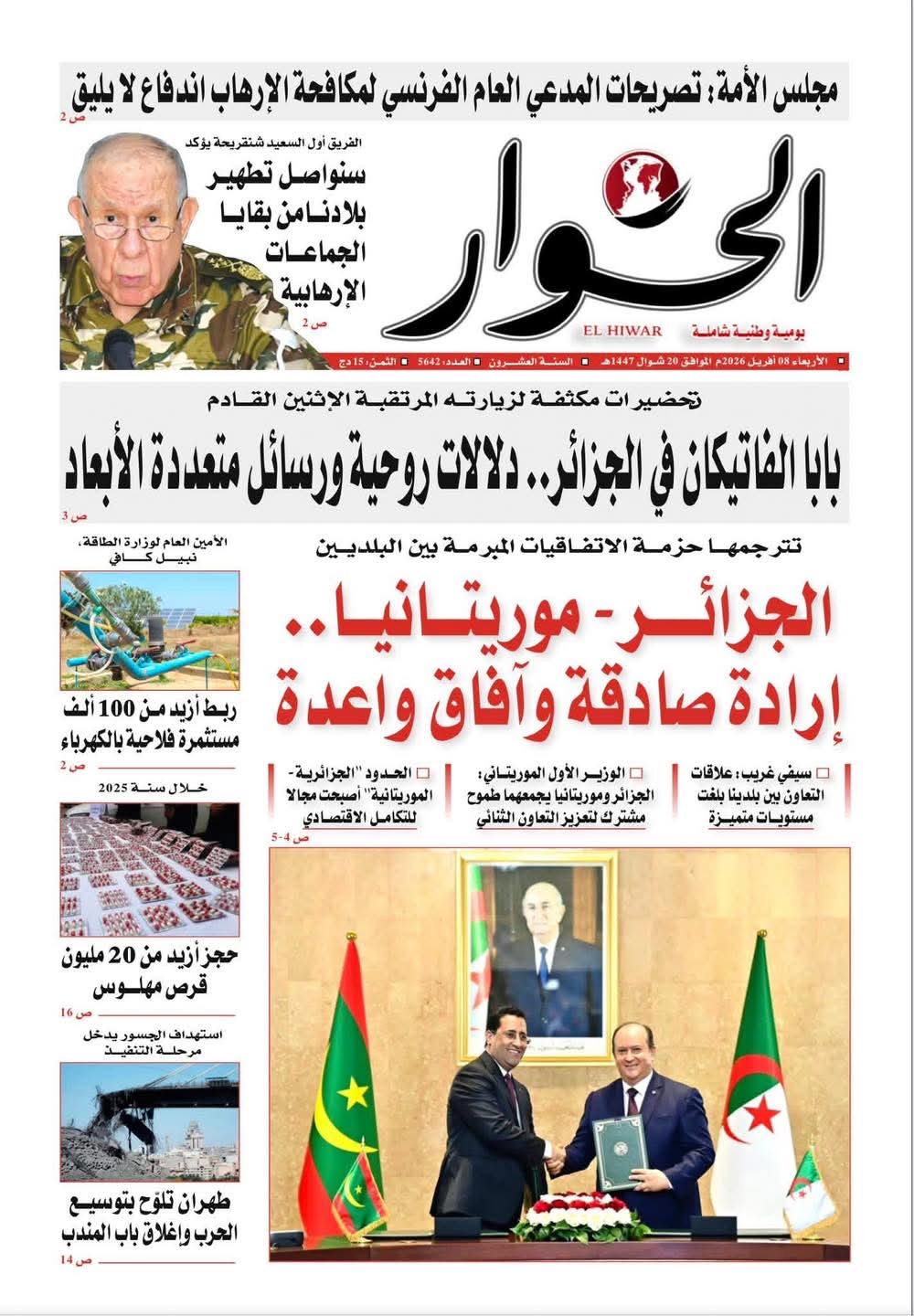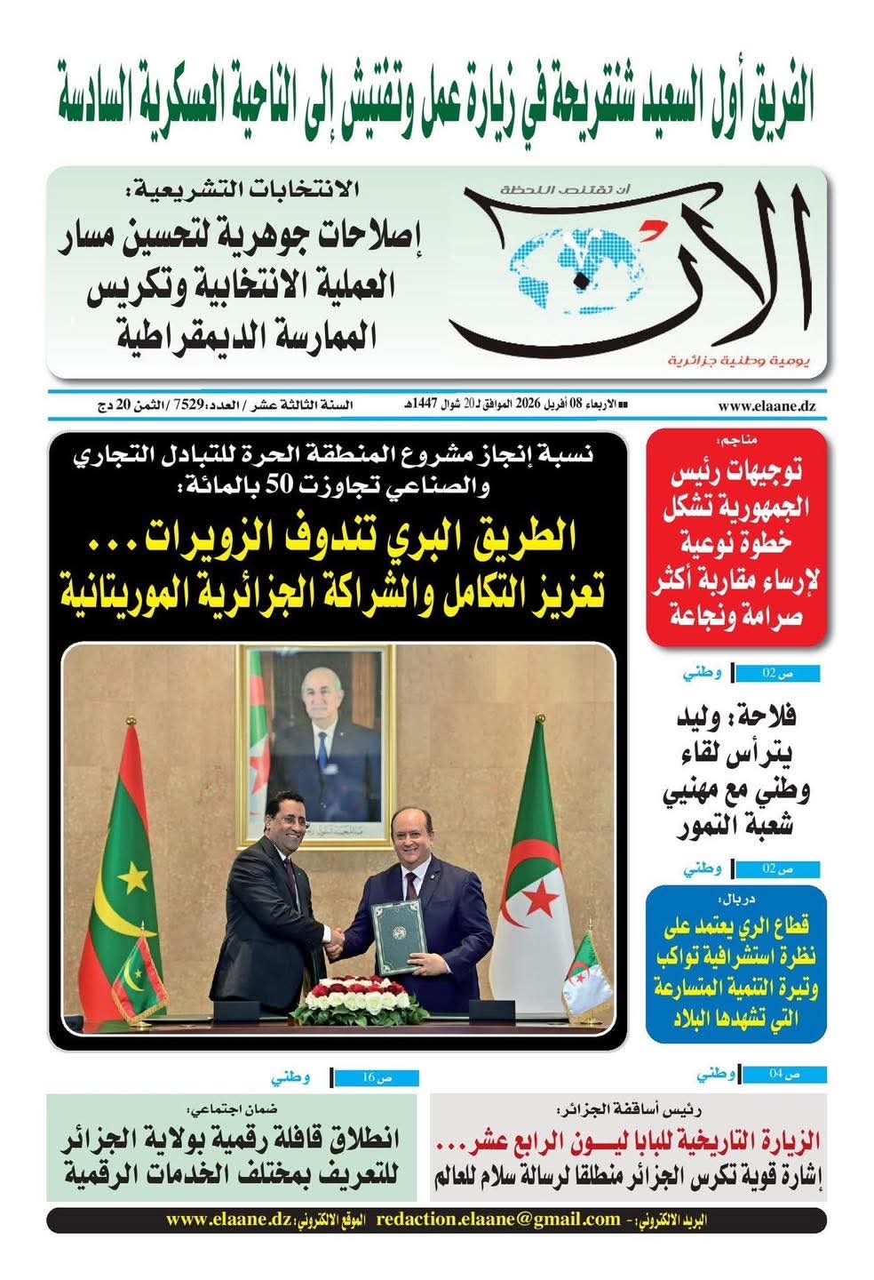 •    جريدة الحوار: الجزائر - موريتانيا… إرادة صادقة وآفاق واعدة