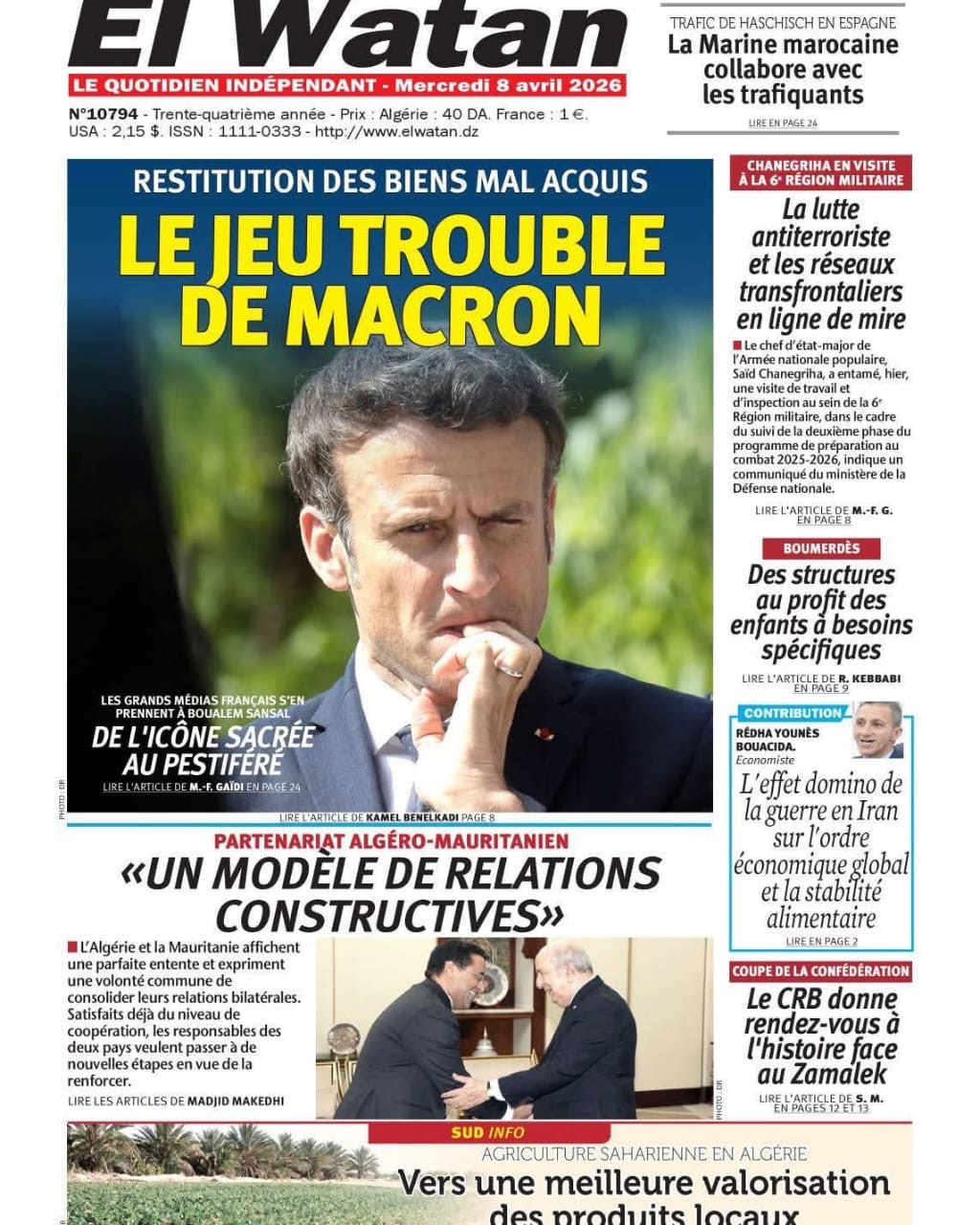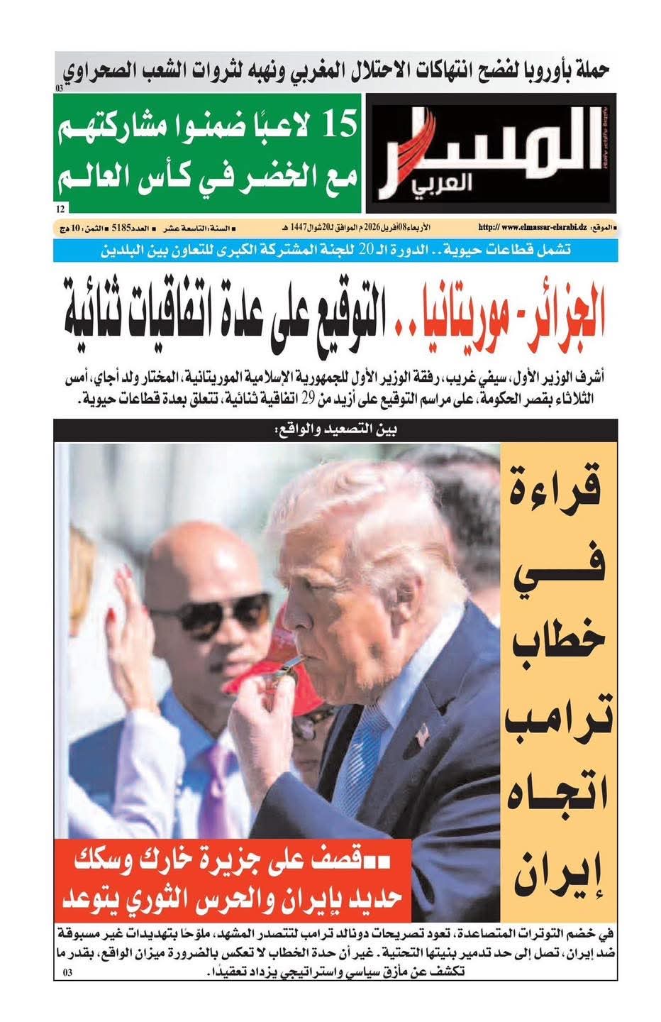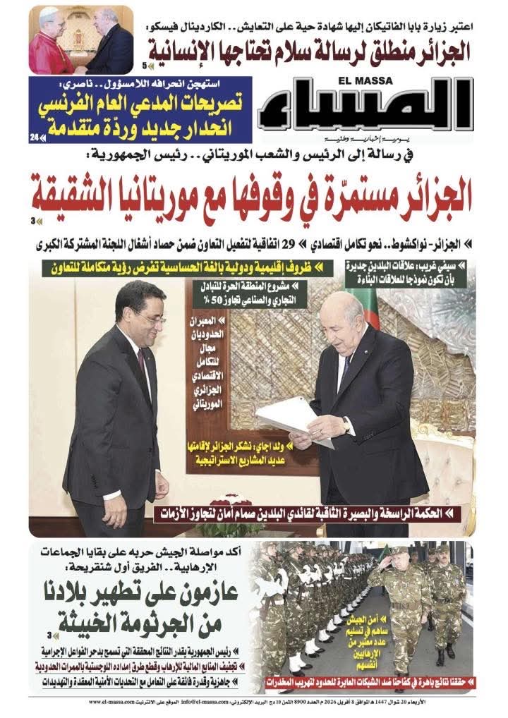 •    المساء: الجزائر مستمرة في وقوفها مع موريتانيا الشقيقة