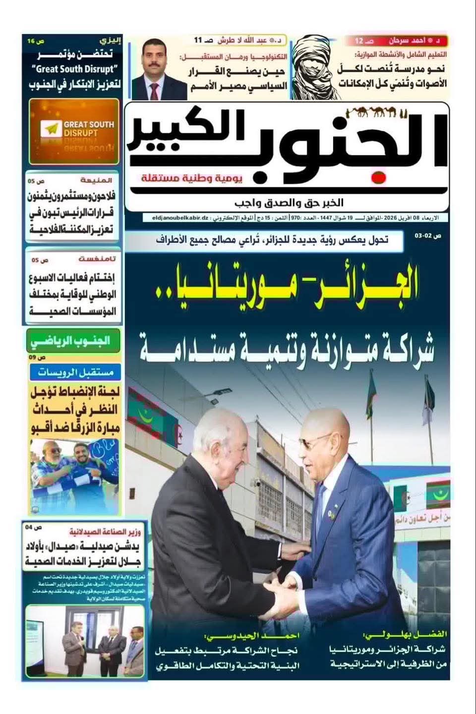•    جريدة الجنوب الكبير: الجزائر - موريتانيا .. شراكة متوازنة وتنمية مستدامة