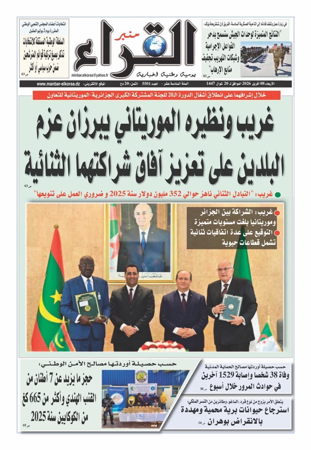 •    جريدة منبر القراء: غريب ونظيره الموريتاني يبرزان عزم البلدين على تعزيز آفاق شراكتهما الثنائية