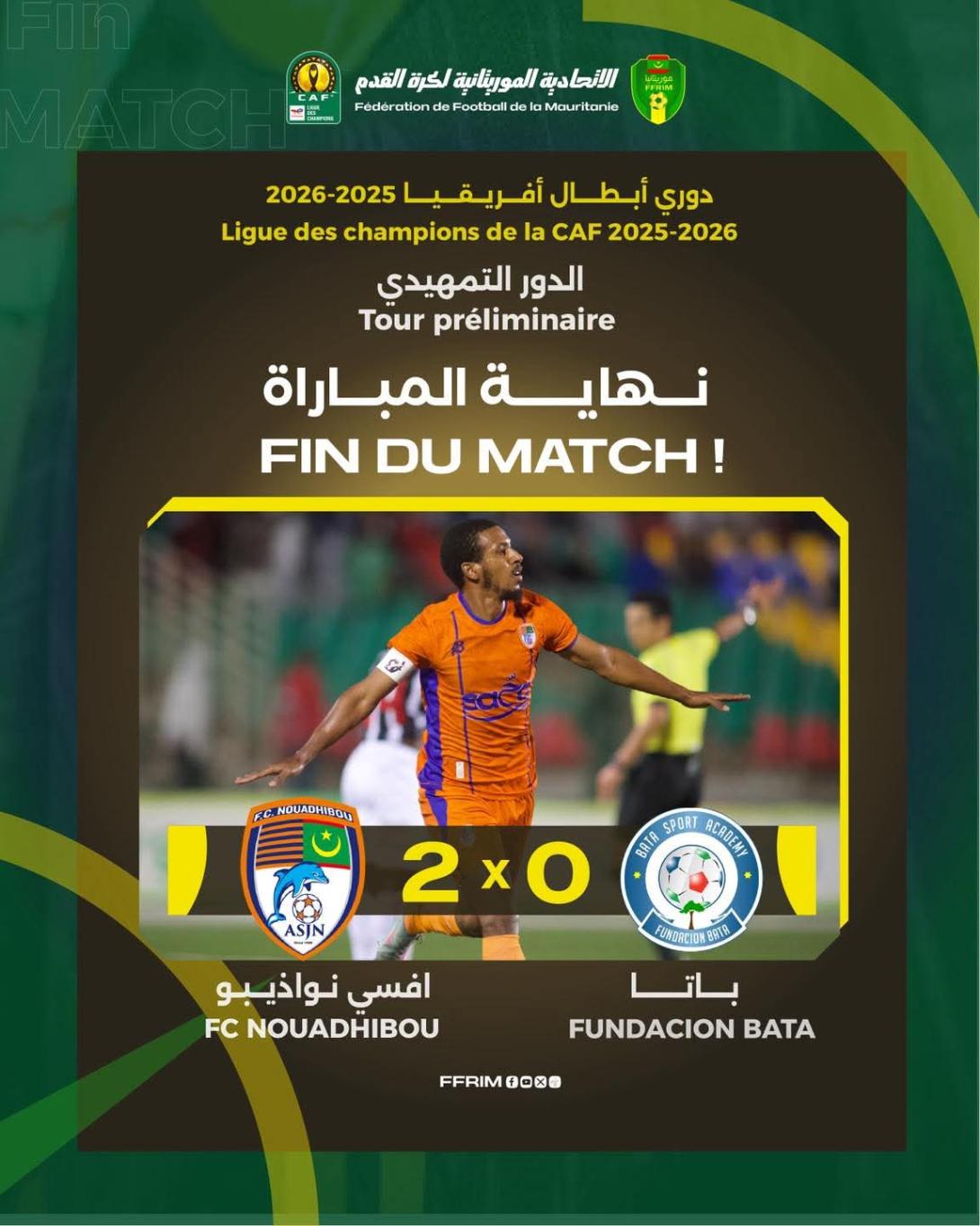 جاء ذلك بعد فوز الفريق الموريتاني على نظيره نادي باتا من غينيا الاستوائية بهدفين دون مقابل.