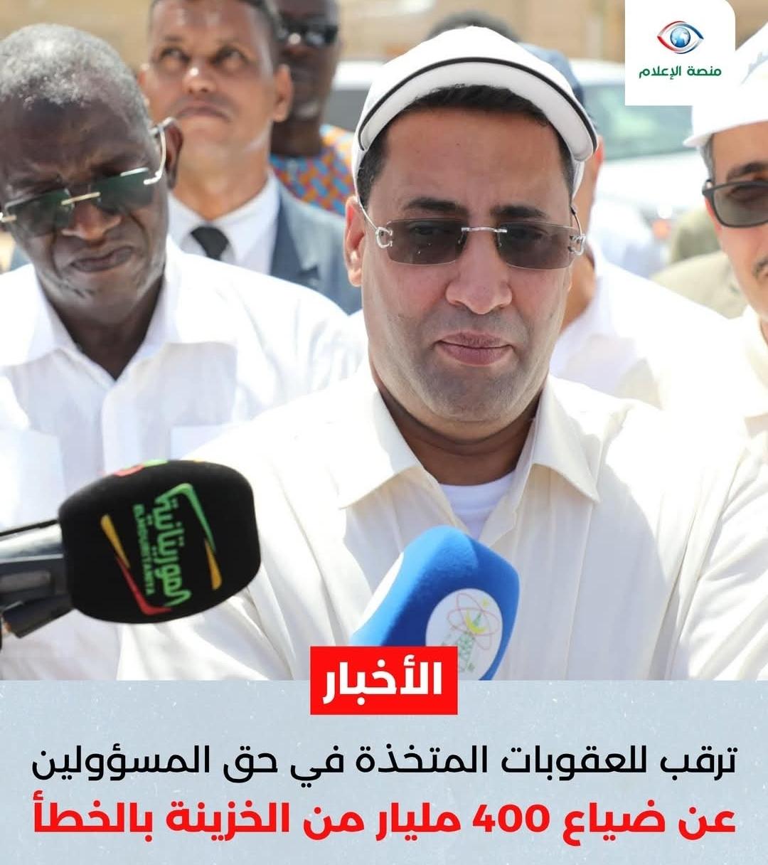 يترقّب الشارع الموريتاني صدور الإجراءات والعقوبات المتخذة من الحكومة بحق القطاعات والمؤسسات العمومية الواردة في تقرير محكمة الحسابات الأخير حول ضياع أكثر من 400 مليار أوقية عن طريق "أخطاء تسييرية"،  بعد أن حدد رئيس الجمهورية، محمد الشيخ الغزواني، اليوم الجمعة موعدًا نهائيًا لتنفيذ التوصيات.