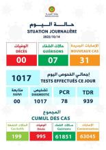 (الإعلام نت): أعلنت وزارة الصحة تسجيل 31 حالة إصابة جدبدة بفيروس كورونا و 07 حالات شفاء دون تسجيل أي حالة وفاة مرتبطة بالفيروس خلال 24 ساعة الأخيرة.