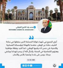 إنا لله وإنا إليه راجعون بقلوب مؤمنة بقضاء الله وقدره، يتقدم أحمد ولد الحاج بتعازيها القلبية للدكتور محمد قالي عبد الجيد إثر وفاة الوالد الفاضل محمد قالي عبد الجيد تغمده الله برحمته الواسعة وأسكنه فسيح جناته وان يلهم ذويه الصبر والسلوان؛ وإنا لله وإنا إليه راجعون.