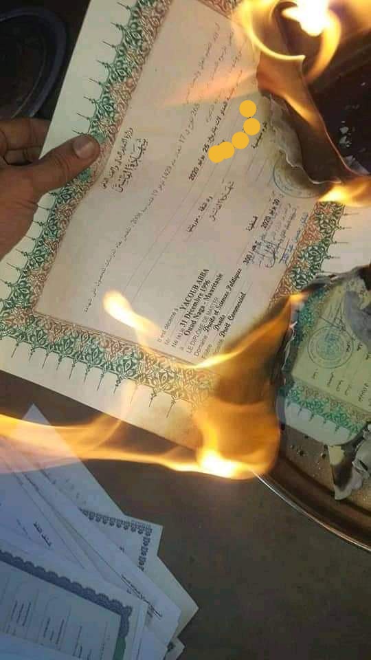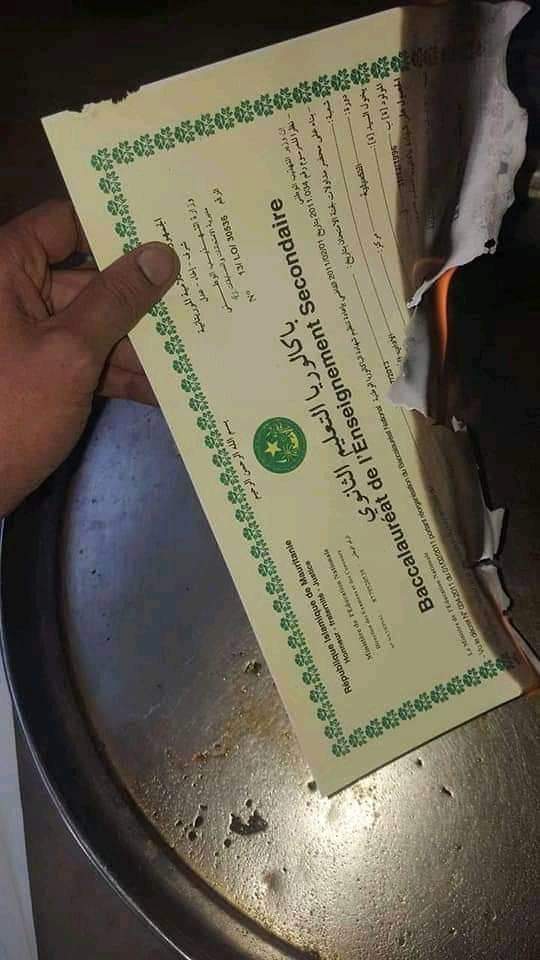 الإعلام نت _ تداول ناشطون على مواقع التواصل الإجتماعي صورا لشهادات محروقة، قالوا إنها ترجع لشاب موريتاني في مقتبل العمر أقدم على حرق شهاداته الدراسية بعد ما يئس من العمل.