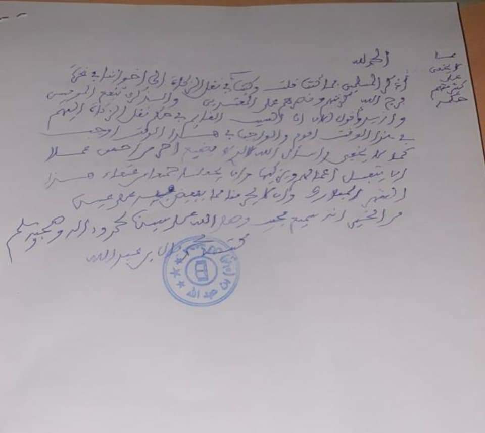 وهذا نص ما كتب العلامة اباه ولد عبد الله: