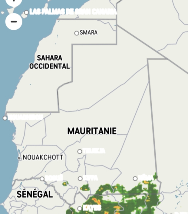 الإعلام نت _ كشفت صور الأقمار الصناعية عن سحب نشطة على مناطق جنوب شرقي موريتانيا.