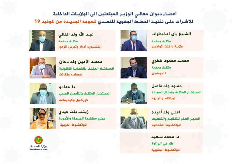 (الإعلام نت) أعلنت وزارة الصحة الموريتانية، عن ارسال بعثات إلى الولايات الداخلية، للإشراف على تنفيذ الخطط الجهوية للتصدي للموجة الحالية من جائحة كورونا.