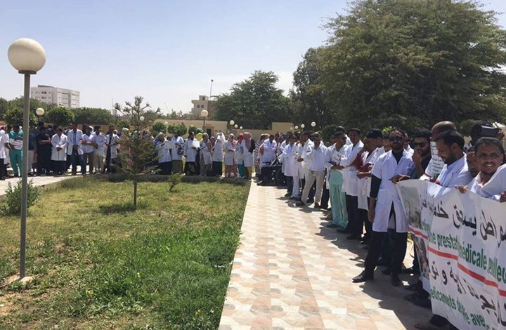 (الإعلام نت) احتج عدد من الأطباء والعاملين في وحدات مواجهة وباء كورونا المستجد في عدة مستشفيات بموريتانيا اليوم، أمام الوزارة الأولى، مطالبين بعقود عمل دائمة معهم.