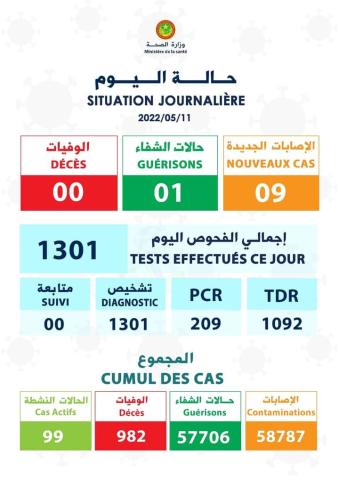 (الإعلام نت): أعلنت وزارة الصحة تسجيل 09 إصابات جديدة بفيروس كورونا و01 حالة شفاء دون تسجيل أي حالة وفاة مرتبطة بالفيروس خلال 24 ساعة الأخيرة