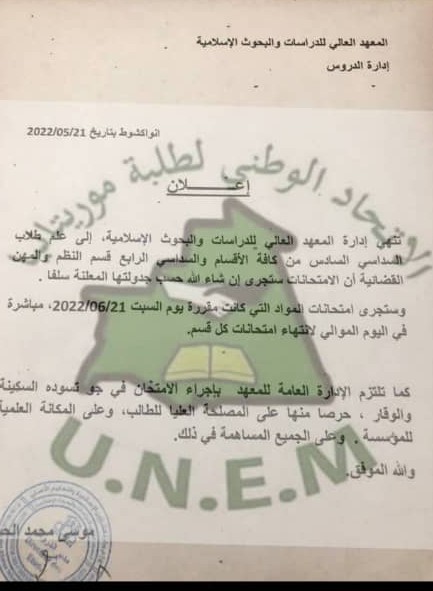 (الإعلام نت) أعلنت إدارة المعهد العالي للدراسات والبحوث الإسلامية عن بدء الامتحانات وفقا لما هو مجدول بالنسبة لجميع السداسيات السادسة لجميع الاقسام والسداسي الرابع لقسم النظم والمهن القضائية، مضيفة أن المواد التي تم تأجيلها لهذه الاقسام ستجرى يوم الخميس المقبل.