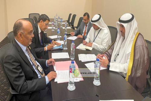 أجرى وزير المالية الموريتاني إسلمو ولد محمد امبادي اليوم السبت، مباحثات مع وزير المالية وزير دولة للشؤون الاقتصادية والاستثمار بدولة الكويت، السيد عبد الوهاب محمد الرشيد.