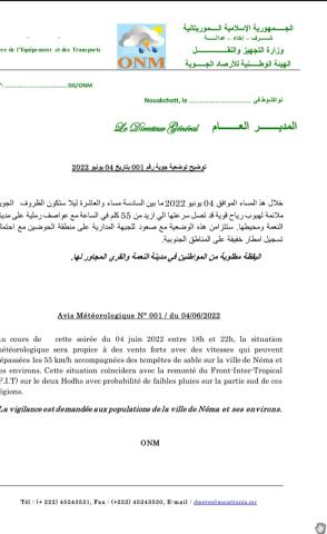 (الإعلام نت): حذرت الهيئة الوطنية للأرصاد الجوية المواطنبن في منطقة الحوض الشرقي تحديدا النعمة والقرى المجاورة لها من رياح قوية وعواصف رملية ستعرفها المنطقة مساء اليوم
