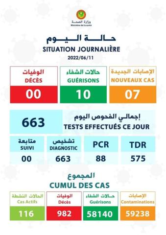 وقالت الوزارة في نشرتها اليومية إنها توصلت للنتيجة بعد إجراء 663 فحصا منها TDR: 575 و PCR: 88 و 663 حالة تشخيص