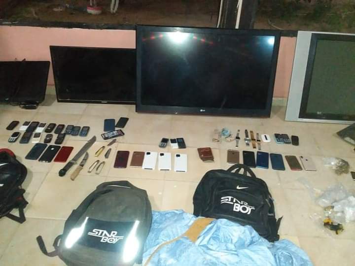 ووفقا لبيان أصدرته الشرطة فقد "ضبط بحوزتها العديد من "المسروقات" منها "شاشات تلفزيون كبيرة ، دراجات نارية ، هواتف ثمينة ، و مبردات مائية".