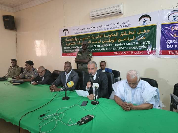 (الإعلام نت): اطلقت المندوبية العامة لاتضامن الوطني ومكافحة الإقصاء "تآزر" اليوم من مدينة تجكجة مكونة التمويل والمتابعة للتعاونيات الإنتاجية على مستوى ولاية تگانت.