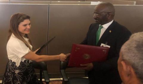 (الإعلام نت): وقع وزير الشؤون الخارجية والتعاون والموريتانيين في الخارج، محمد سالم ولد مرزوك يوم أمس الجمعة، مع اريكا موينس، وزيرة الخارجية بجمهورية بنما، على إعلان مشترك لإقامة علاقات دبلوماسية على مستوى السفراء بين البلدين.