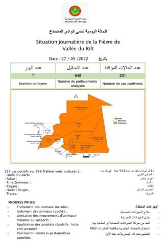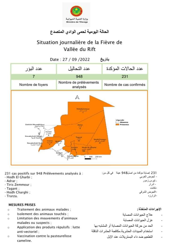 وقالت الوزارة في نشرة لها إن البؤر تتوزع على الحوض الشرقي والحوض الغربي والترارزة وآدرار وتكانت وتيرس زمور ولعصابه.