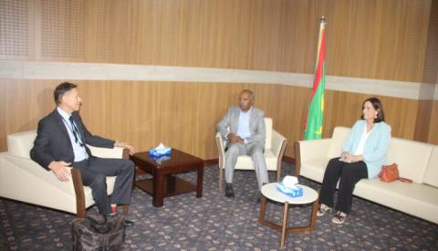 (الإعلام نت): أجرى رئيس الجمعية الوطنية الشيخ ولد بايه، اليوم الثلاثاء في نواكشوط، مباحثات مع رئيس بعثة الاتحاد الأوروبي في موريتانيا غويليام جونز.