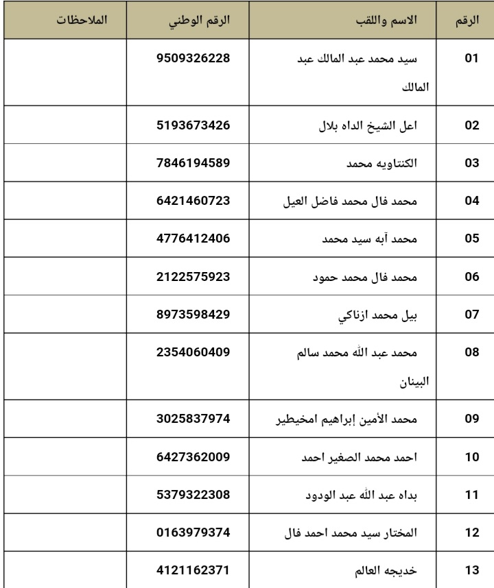 (الإعلام نت): "ترفع الأركان العامة للجيوش/المكتب الثالث إلى علم الشباب الموريتانيين المبينة أسماؤهم وأرقامهم الوطنية أن مسابقة اكتتاب مهندس تخصص الأجهزة الطبية التي كانت مقررة يوم الخميس الموافق 29/09/2022 بتجمع أبوليتكنيك سيتم إجراؤها يوم الاثنين الموافق 17/10/2022 بالمدرسة الوطنية لأعوان الصحة المتواجدة بالمستشفي العسكري بنواكشوط.