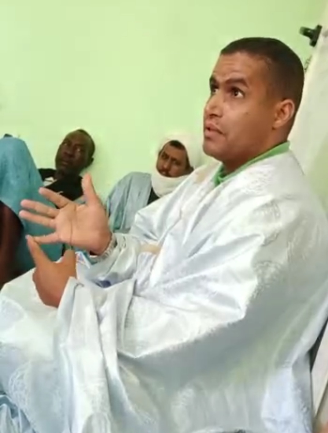يطيب لي أن أبلغكم باعتمادي رسميا من طرف قيادة ائتلاف وطن الذي يرأسه الوزير سيدي ولد الزحاف كممثل معتمد منذ ثلاثة أسابيع بعد اللقاء الذي جمعنا فى انواكشوط وبالمناسبة أود اخباركم ان هذا الائتلاف يضم مكونات عدة تضم أطر التعليم وأطر الصحة والأئمة وحملة الشهادات وشباب الضفة ورجال الأعمال وشخصيات مرجعية وطنية وأنه يتواجد فى كل زاوية من هذا الوطن بجاهزية سياسية فذة ضد خطاب العنف والتطرف والعنصرية والجهوية والقبلية ومع العدل والانصاف والوسطية والتمسك بالأخلاق الفاضلة ومع التغير العاجل فى جو السكينة والاحترام .