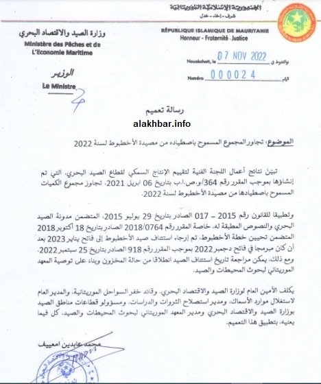 وأوضحت الوزارة أن القرار جاء بعد تجاوز الكمية المسموح باصطيادها خلال العام 2022.