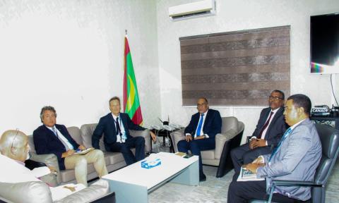 (الإعلام نت): أجرى وزير المالية دإسلمو ولد محمد أمبادي، مساء اليوم الأربعاء بمكتبه في نواكشوط، مباحثات مع رئيس بعثة الاتحاد الأوروبي في موريتانيا غويليم جونز,