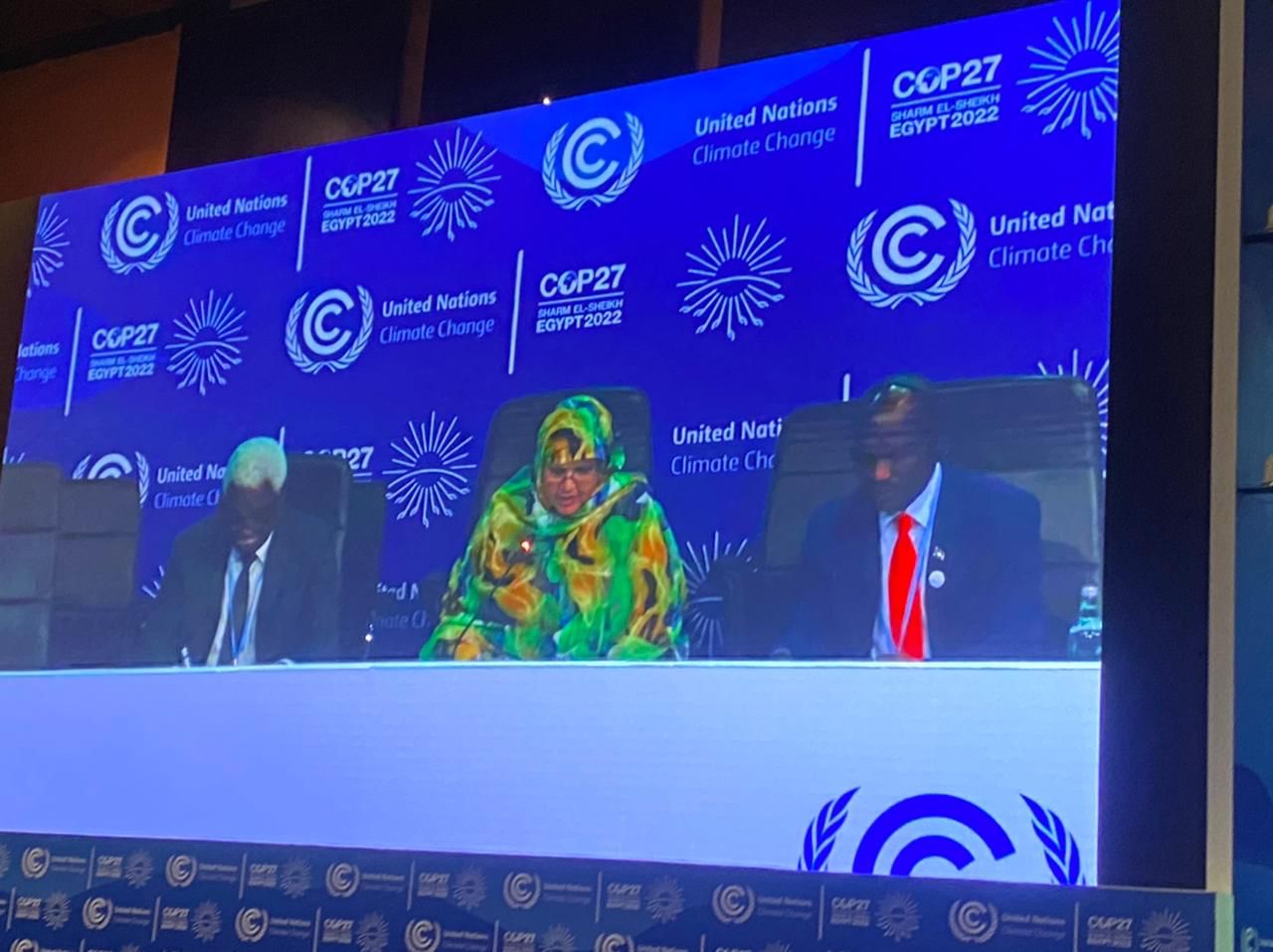 قدمت السيدة فاطمة عبد المالك رئيسة المدن والحكومات المحلية المتحدة بإفريقيا، رئيسة جهة نواكشوط يوم أمس الجمعة 11 نوفمبر 2022 بمدينة شرم الشيخ المصرية أثناء قمة المناخ السابعة والعشرين عرضا أمام فريق المفاوضين الأفارقة حول أهمية مشاركة التجمعات المحلية في الحلول المبرمجة للتصدي لآثار التغيرات المناخية وخصوصا ما يتعلق منها بالتكيف مع التغيرات المناخية، مبرزة أهم مشاكل وتحديات المناخ في القارة الإفريقية، كما طالبت بضرورة إدراج منتدى خاص بالتجمعات المحلية في جدول أعمال قمة المناخ المقبلة.