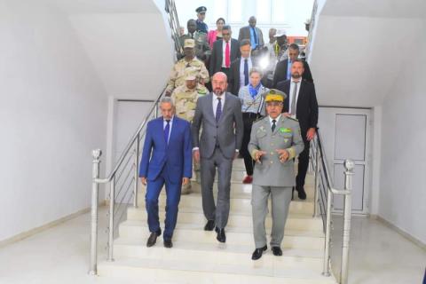 (الإعلام نت): زار رئيس المجلس الأوروبي شارل ميشيل صباح اليوم كلية الدفاع الوطني لمجموعة دول الساحل الخمس بالعاصمة نواكشوط.
