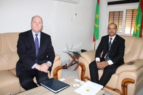 (الإعلام نت): استقبل مفوض حقوق الإنسان و العمل الإنساني و العلاقات مع المجتمع المدني الشيخ أحمدو ولد أحمد سالم ولد سيدي صباح يوم الاثنين بمكتبه، ، وفدا من مكتب متابعة محاربة الإتجار بالبشر، التابع لوزارة الخارجية الأمريكية، برئاسة برايان ماركيس، نائب مدير المكتب.