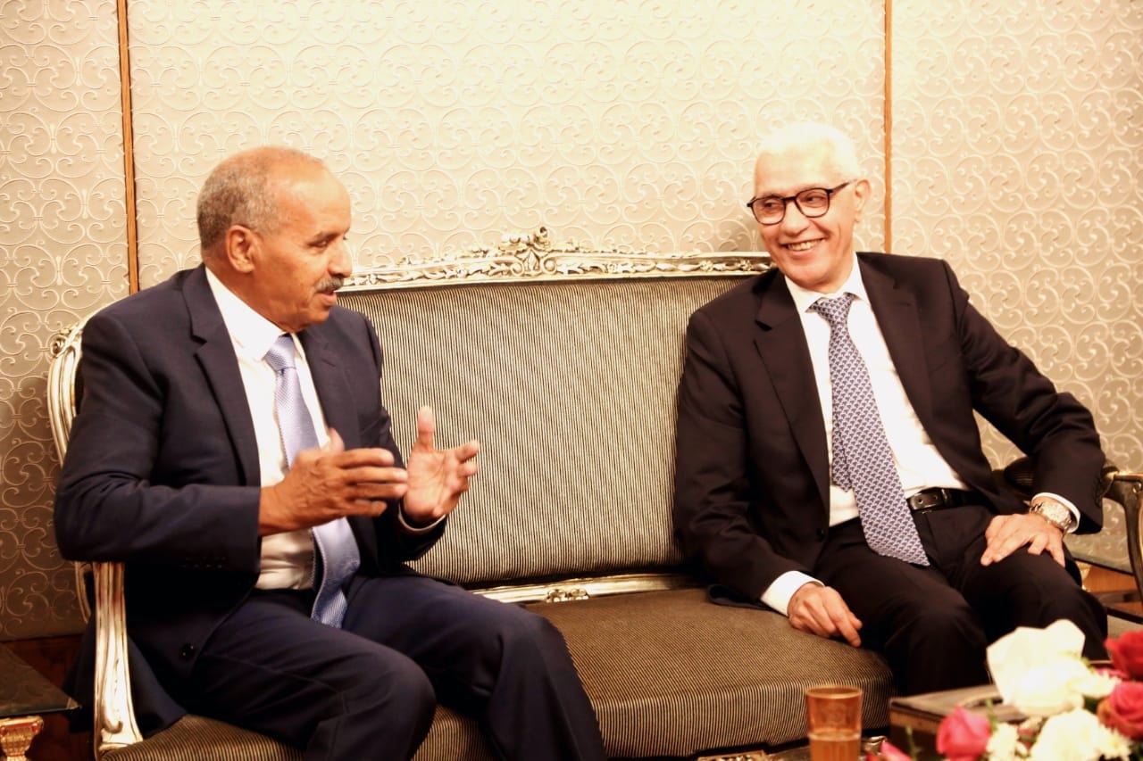 (الإعلام نت): أجرى رئيس الجمعية الوطنية الشيخ أحمد بايه مساء أمس الأحد بمطار الرباط سلا في المملكة المغربية، مباحثات مع رئيس مجلس النواب المغربي راشد الطالبي العلمي.