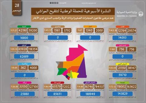 (الإعلام نت): نشرت وزارة التنمية الحيوانية حصيلتها الأسبوعية للحملة الوطنية لتلقيح المواشي ضد مرضي طاعون المجترات الصغيرة وذات الرئة والجنب الساري لدى الأبقار. وفي مايلي الشكل البياني الذي نشرت الوزارة