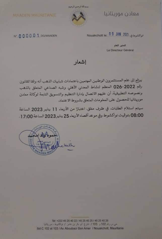 معادن تصدر إشعارا متعلقا باعتماد شبابيك الذهب "وثيقة"