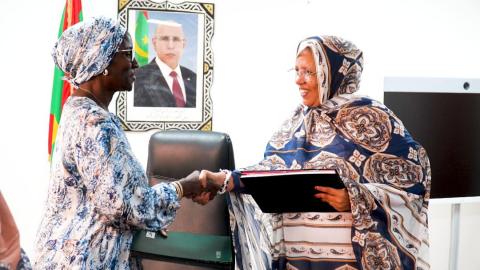 (الإعلام نت): وقعت معالي مفوضة الأمن الغذائي فاطمة بنت خطري، اليوم الثلاثاء مع الممثلة المقيمة لبرنامج الغذاء العالمي كينداي صمب اتفاقية تتولى بموجبها المفوضية الإشراف على تنفيذ عملية توزيع مساعدات نقدية لصالح أكثر من 20 ألف أسرة في العاصمة نواكشوط.