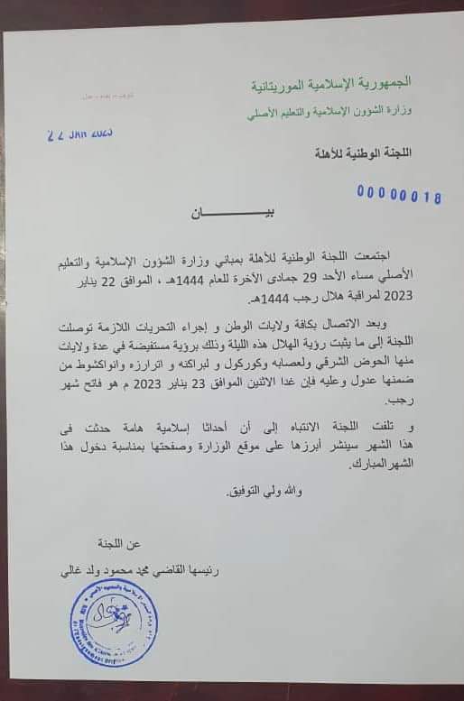 لجنة الأهلة تعلن ثبوت رؤية هلال رجب "وثيقة"