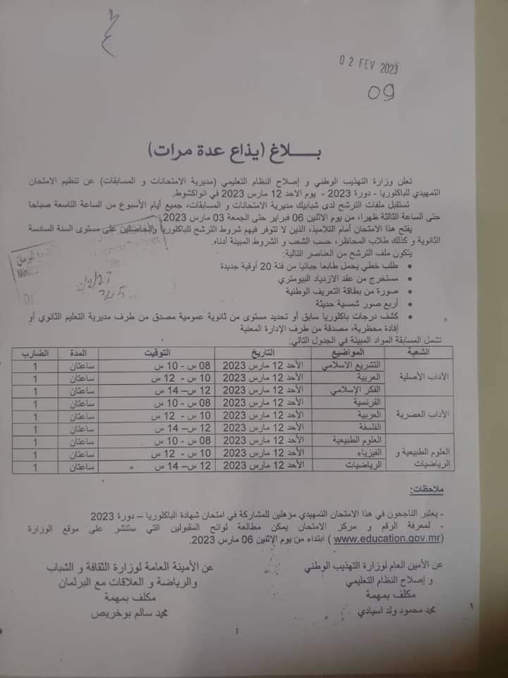وزارة التهذيب تحدد موعد إجراء الباكلوريا التجريبية "وثيقة"
