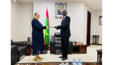 (الإعلام نت): تسلم وزير الشؤون الخارجية والتعاون والموريتانيين في الخارج محمد سالم ولد مرزوك اليوم أوراق اعتماد ريغمور آليان كوتي سفيرة فوق العادة وكاملة السلطة لمملكة النرويج لدى بلادنا مقيمة في جمهورية مالي.