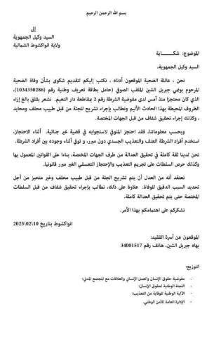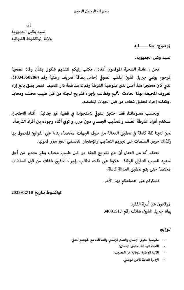 أسرة ولد الشين المتوفي في محتجز الشرطة ترفع شكاية لوكيل الجمهورية "وثيقة"