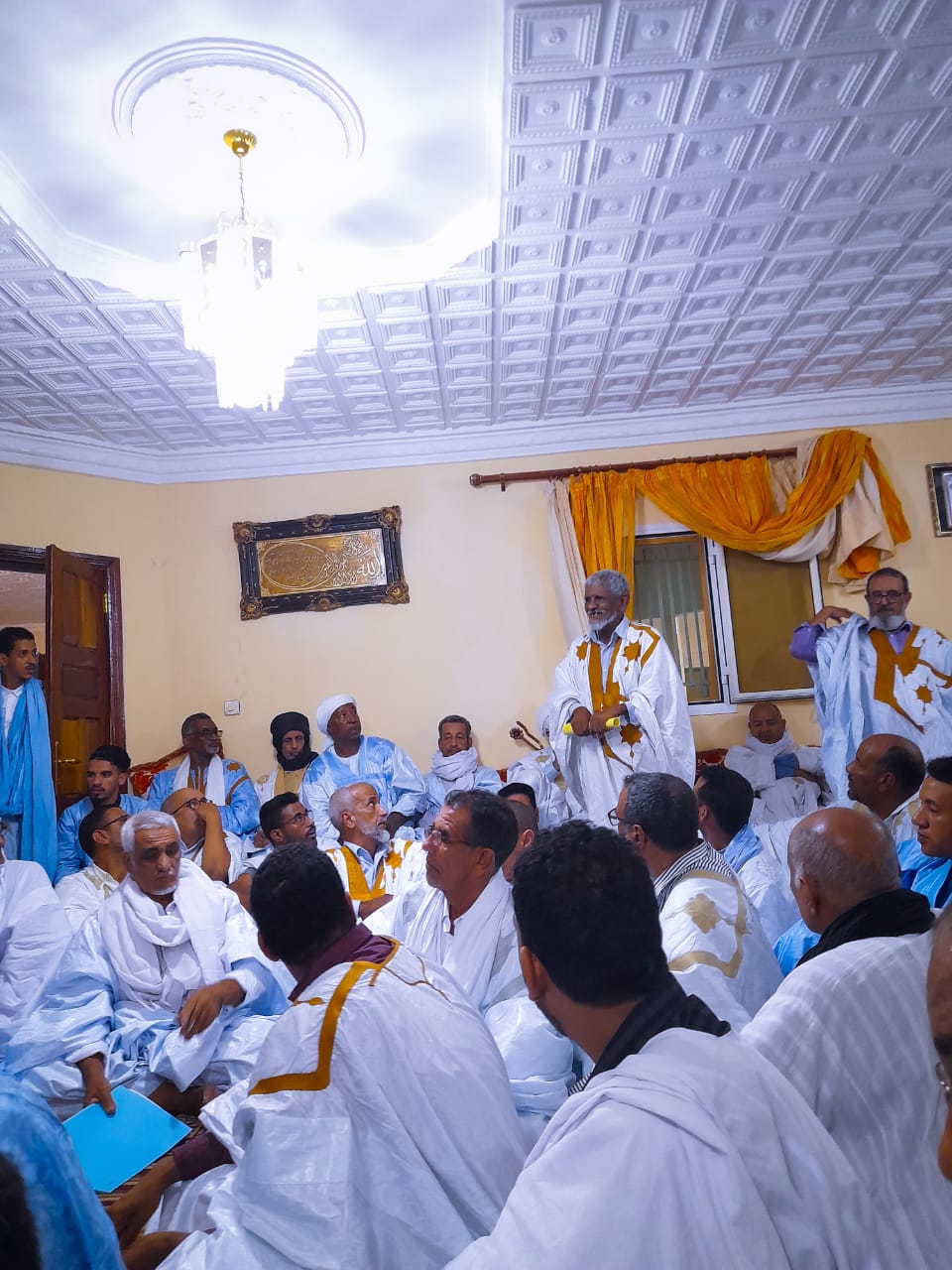 و في آخر كلمته خلص الوزير محمد ولد معاوية الى دعوة أعضاء الجمع الى التوحد حول الأهداف و المثل السامية التي اعلن عنها في الإجتماع العام المنعقد فى البيت اليدالي و الذي انبثقت منه اللجنة المتواجدة هذه الليلة كما دعى الكل الى تثمين الأجواء السائدة منذ وصول فخامة الرئيس محمد ولد الشيخ الغزواني الى قيادة البلد لما تمتاز به سنوات حكمه من انفتاح و تهدئة طالت كافة مكونات الشعب الموريتاني.